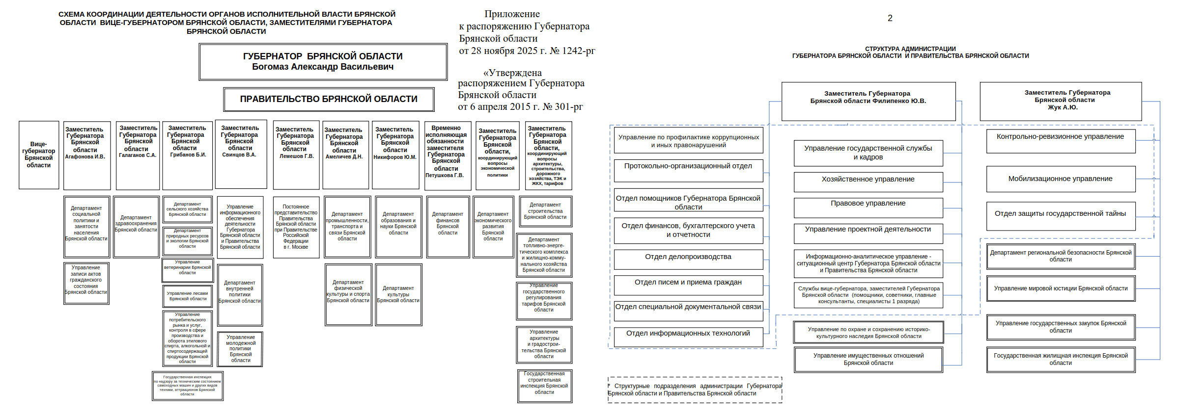 схему координации деятельности органов исполнительной власти Брянской области вице-губернатором Брянской области, заместителями Губернатора Брянской области. (в ред. распоряжения Губернатора Брянской области от 1 марта 2024 № 189-рг)