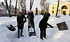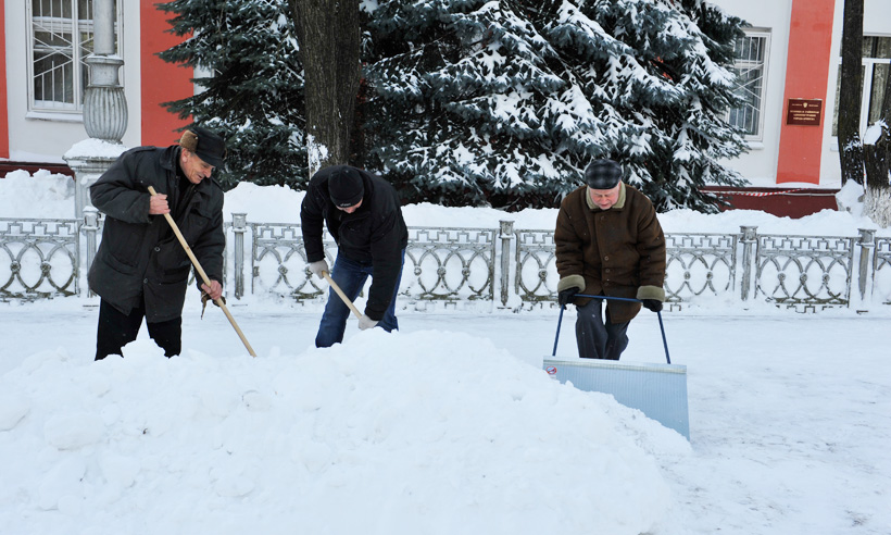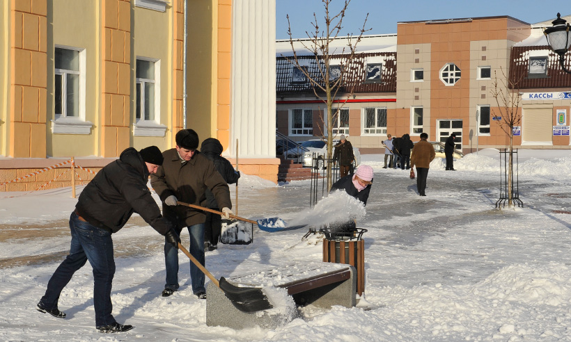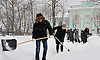 На расчистку улиц областного центра от снега вышли не только снегоуборочная техника, дворники, но и сотрудники областной администрации, других госучреждений, работники предприятий и организаций. Свой рабочий день чиновники начали с лопатами.