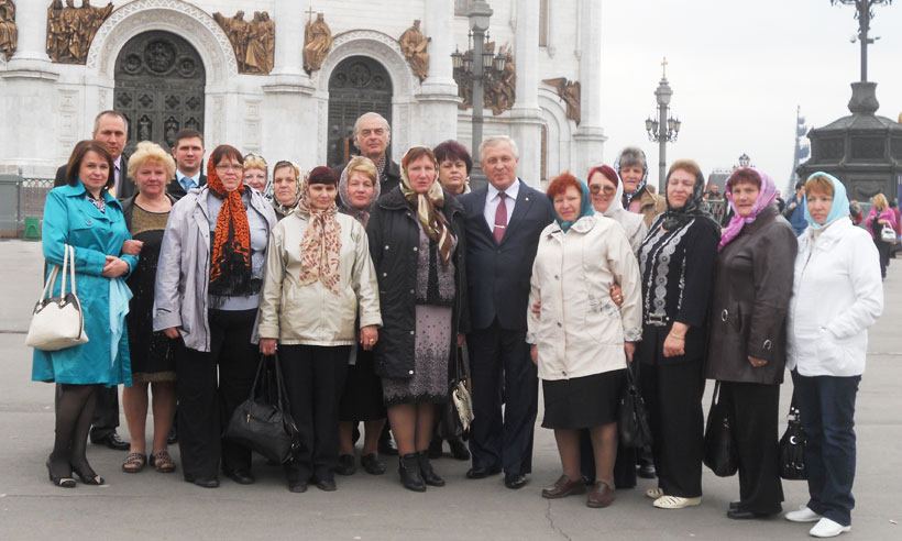 На следующий день наш земляк Михаил Фирсов организовал экскурсию по территории Московского Кремля, в ходе которой члены делегации посетили Большой Кремлевский дворец, наблюдали за разводом конного и пешего караула Президентского полка. Затем состоялась экскурсия по Храму Василия Блаженного на Красной площади. Для брянской делегации была организована также обзорная экскурсия по Москве с посещением Соборного Храма Христа Спасителя.