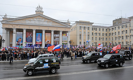 По завершении митинга профсоюзов его участники присоединились к шествию «Геогриевская ленточка», прошедшем от Театральной площади к площади Партизан, а затем приняли участие в торжественном открытии «Вахты Памяти −2013».
