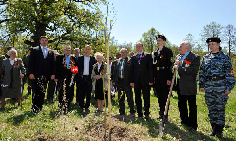 Юнармейцы Навлинского района, воспитанники кадетских корпусов Брянщины вместе с Губернатором и ветеранами посадили деревья на Аллее Славы неподалёку от Партизанского дуба.