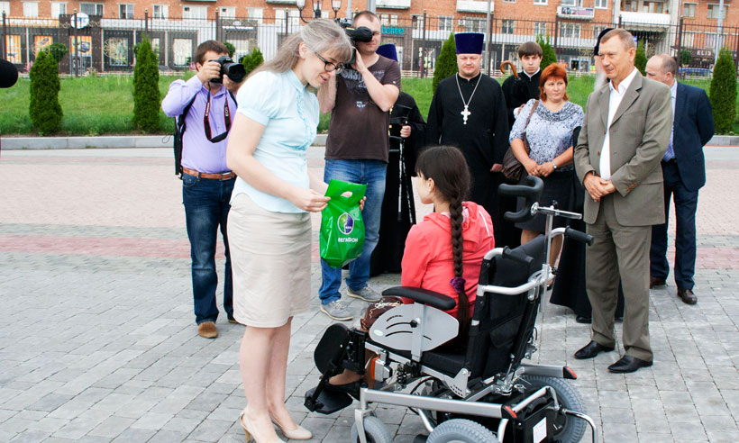 28 мая Губернатор Николай Денин и Епископ Брянский и Севский Александр вручили кресло-коляску с электроприводом девочке-инвалиду Виктории Рословец.