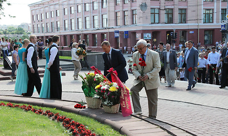 В первый день праздника по традиции руководители области и города в Брянске возложили цветы к памятнику нашему знаменитому земляку.