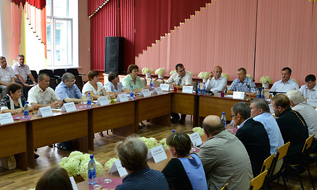 В актовом зале школы Николай Денин пообщался с активом Стародуба. Обсуждались проблемы социально-экономического развития города, перспективы решения имущественных и других вопросов.