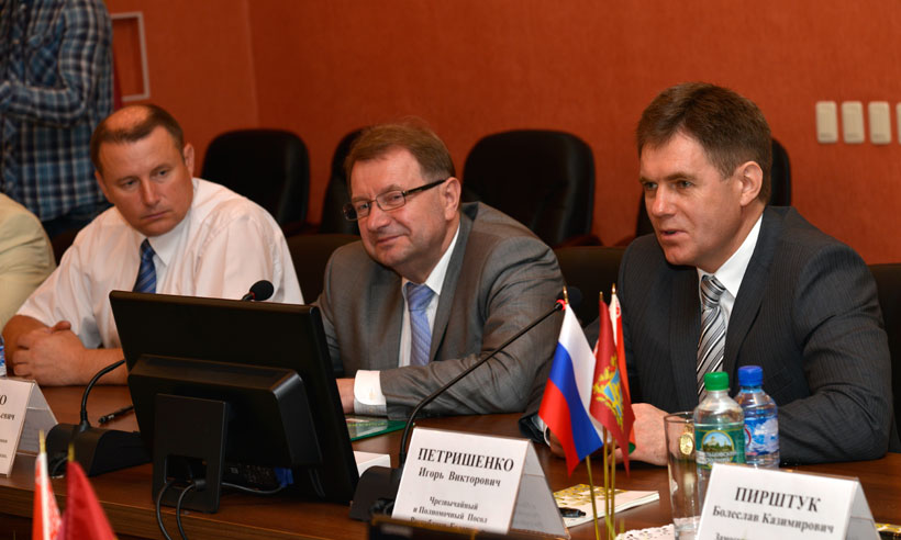 Сегодня утром в многофункциональном центре «Боровое» состоялась совещание, в котором с белорусской стороны, помимо Игоря Петришенко, приняли участие Руководитель отделения Посольства Республики Беларусь в Российской Федерации в Смоленске Николай Куцко, заместитель Председателя Гомельского облисполкома Болеслав Пирштук, генеральный директор ПО «Гомсельмаш» Александр Камко, первый заместитель генерального директора ОАО «Амкодор» Александр Нахаенко, председатель правления БООО «Белорусское землячество на Брянщине» Николай Голосов.