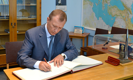 Глава региона сделал запись в Книге посетителей открытого 12 апреля 1969 года Мемориального рабочего кабинета Юрия Гагарина.
