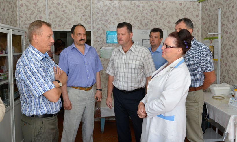 Затем Губернатор побывал в сельских — клубе и храме, в фельдшерско-акушерском пункте. Здание ФАПа деревянное, но ещё крепкое. По решению Губернатора в нём сделают ремонт, здесь станет уютнее и современнее.