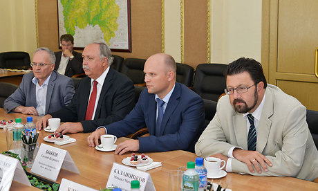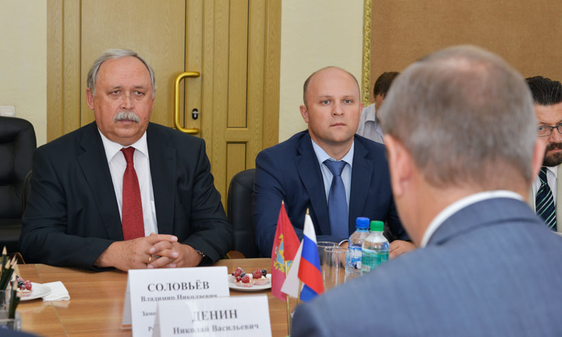 В Правительстве Брянской области состоялась встреча Губернатора Николая Денина с заместителем председателя Верховного суда РФ Владимиром Соловьёвым и председателем Брянского областного суда Евгением Быковым. В ней также приняли участие председатель Брянской областной Думы Владимир Гайдуков, федеральный инспектор в Брянской области Михаил Калашников, первый заместитель прокурора Брянской области Александр Ступак, заместители Губернатора Анатолий Теребунов и Михаил Климов.