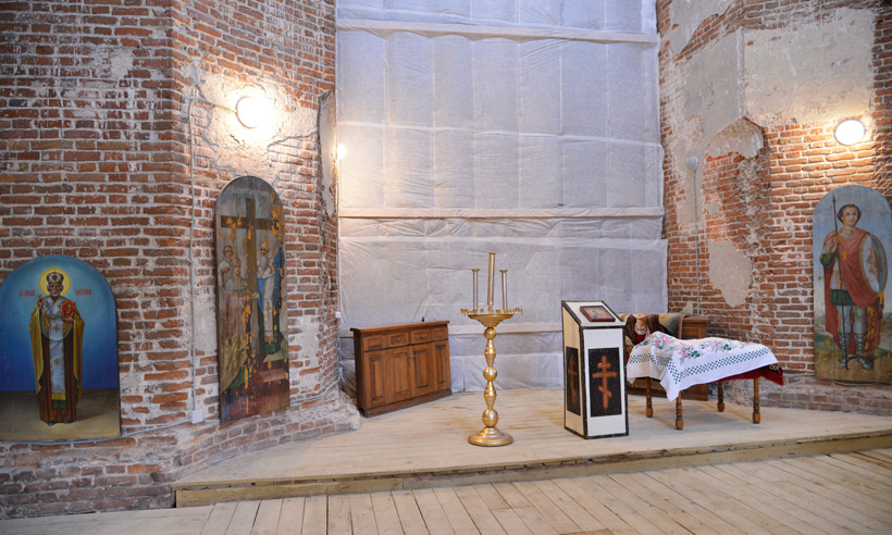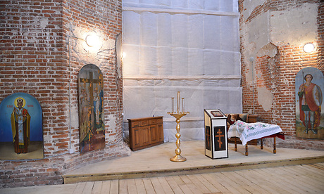 Побывали высокие гости и в старинном храме 19 века в честь Архангела Михаила, восстанавливаемый при активном участии отца Аркадия.