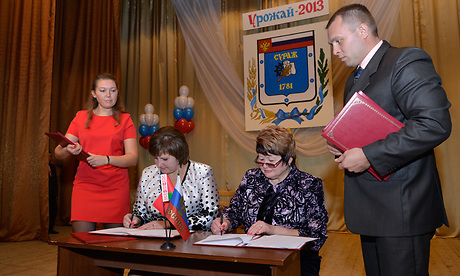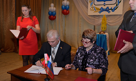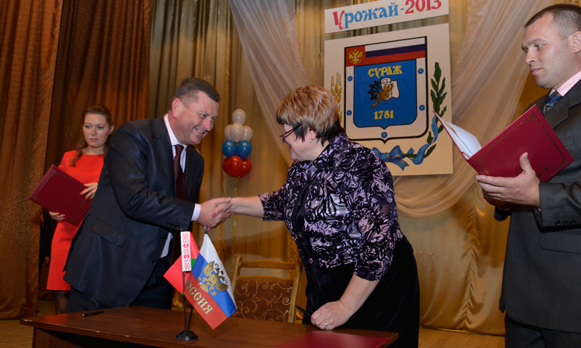 В торжественной обстановке было подписано соглашение о культурном и экономическом сотрудничестве между Суражским районом и приграничными районами Республики Беларусь — Ветковским, Костюковичским и Хотимским.