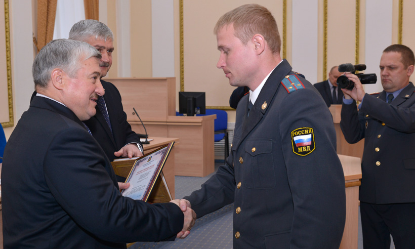 По представлению руководства УМВД России по Брянской области за образцовое исполнение служебных обязанностей администрация Губернатора Брянской области и Правительства Брянской области, областная Дума и главный федеральный инспектор по Брянской области наградили лучших сотрудников органов внутренних дел.