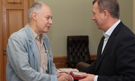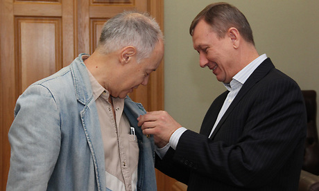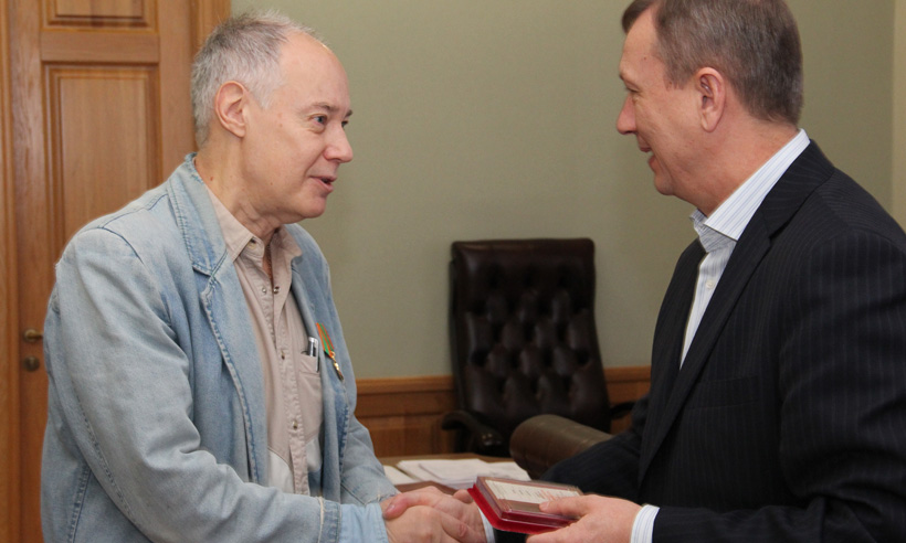 Николай Денин вручил Владимиру Конкину памятную медаль «70 лет освобождения Брянской области» и подарочное издание произведений А. К. Толстого.