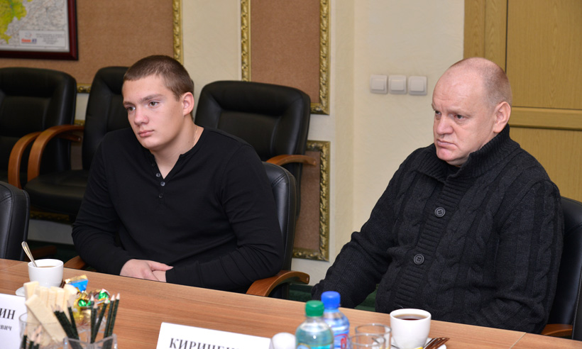 10 декабря состоялась встреча Председателя Правительства Брянской области Николая Денина с боксёром Дмитрием Маруткиным и его тренером Вячеславом Кириченко.