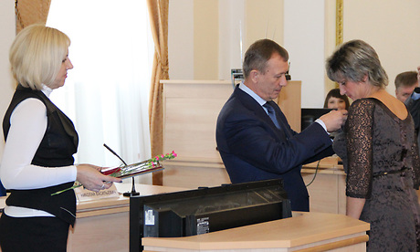 А затем участникам мероприятия были вручены награды ЦИК России, награды Избирательной комиссии Брянской области, а также почетные грамоты Губернатора Брянской области и Брянской областной Думы.