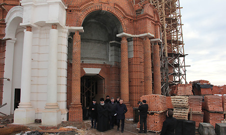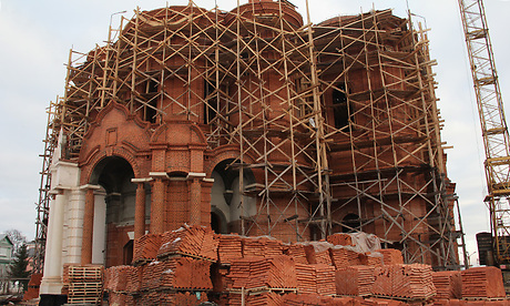Возведение основных стен практически завершилось, начались работы по наведению купольной части. Задача, которая стоит сейчас перед строителями — как можно быстрее закрыть «периметр» здания, защитив тем самым внутренние помещения от осадков.