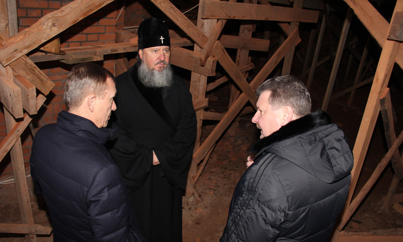 Накануне Рождества Губернатор Николай Денин и митрополит Брянский и Севский Александр посетили Свенский монастырь, обсудили ход строительства Успенского собора.