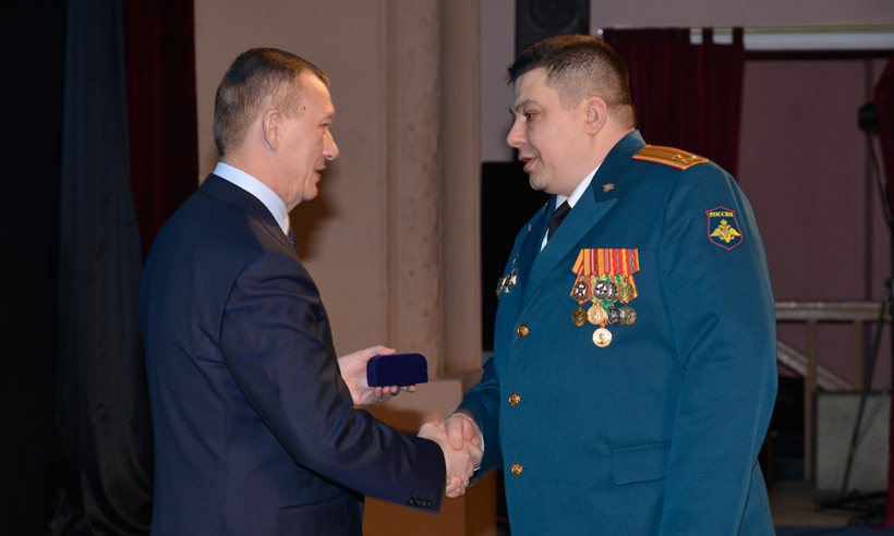 Николай Денин и другие высокие гости вручили отличившимся военнослужащим и работникам различных структур, офицерам запаса и ветеранам, ведущим активную общественную работу с молодёжью, почётные грамоты, благодарности и ценные подарки.