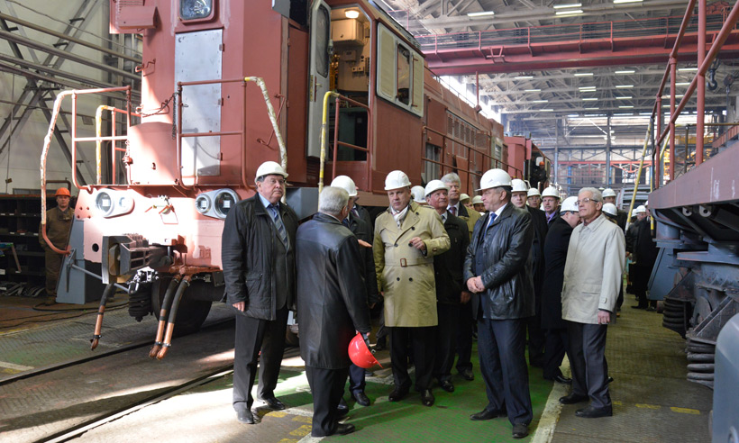 Он осмотрел цеха, в которых собирают маневровые и магистральные тепловозы, изготавливают их корпуса, узлы и агрегаты; холодно-прессовый и тележечный цеха, механообрабатывающее производство и столовую, открытую после реконструкции 3 марта этого года.