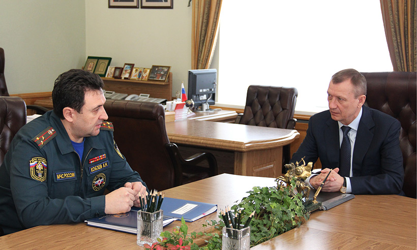 Губернатор Николай Денин провел рабочую встречу с начальником Главного управления МЧС России по Брянской области Александром Кобзевым.