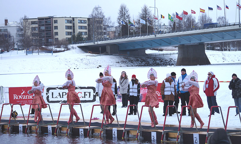 Рованиеми — официальная резиденция Санта Клауса. Соревнования проходили в Центральном парке города на берегу реки Кемийоки, что на границе Северного Полярного Круга. Вода Кемийоки, конечно, ледяная, но атмосфера соревнований была теплой.
