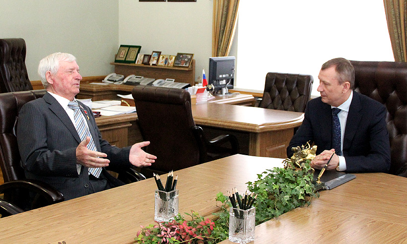 Губернатор Николай Денин провел рабочую встречу с Героем Социалистического Труда, депутатом Брянской областной Думы, директором товарищества на вере «Красный Октябрь» Георгием Лобусом.