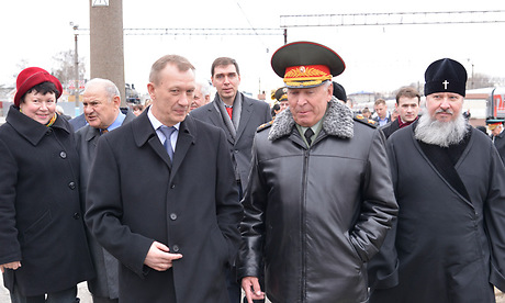 На брянской земле гостей тепло встретили Герой Советского Союза Виктор Афанасьев, Губернатор Николай Денин, его заместитель Анатолий Теребунов, председатель Брянской областной Думы Владимир Гайдуков, исполняющий обязанности главы Брянской городской администрации Анатолий Кистенёв, митрополит Брянский и Севский Александр, главный федеральный инспектор по Брянской области Леонид Соломатин и другие.