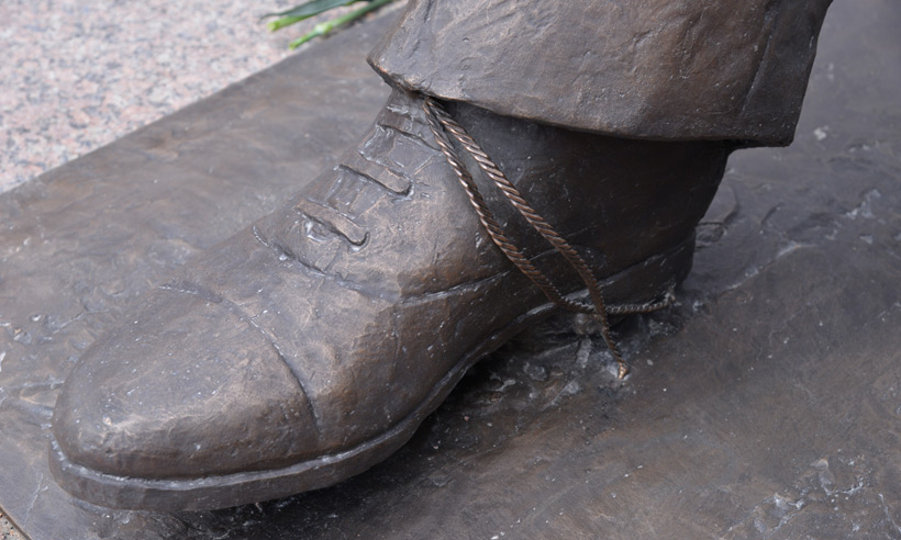 В мае 1966 года легендарный космонавт посетил Брянскую область. В скульптурном образе подмечена деталь — развязавшийся шнурок у Юрия Гагарина, когда он после исторического полета шел навстречу первому лицу государства.