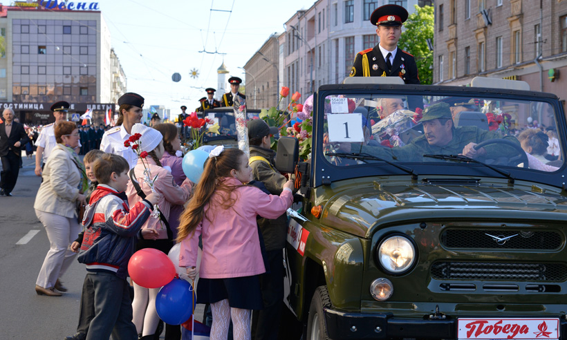 С концертными программами на различных площадках выступают лучшие творческие коллективы, в парках и скверах города проходят праздничные мероприятия под девизом «Одна на всех Великая Победа!».