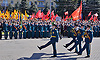 В едином парадном строю прошли войска Брянского гарнизона, рота барабанщиков Брянской кадетской школы, сводные роты офицеров Брянского гарнизона и сотрудников МЧС, сотрудники Пограничного управления ФСБ, УФСИН, таможни, службы судебных приставов, воспитанники кадетских корпусов из Дятькова, Клинцов, Стародуба, юнармейцы, рота почетного караула в/ч 42685.