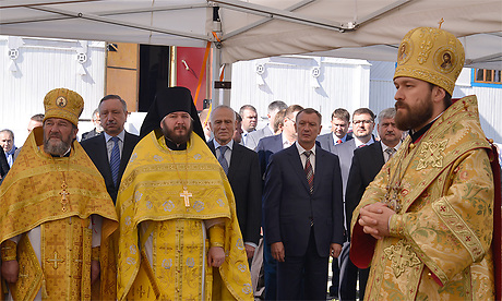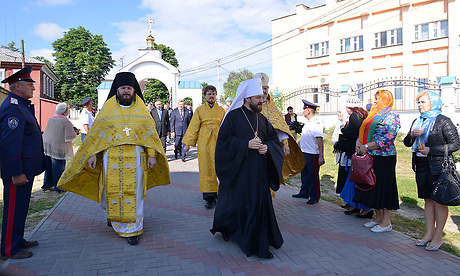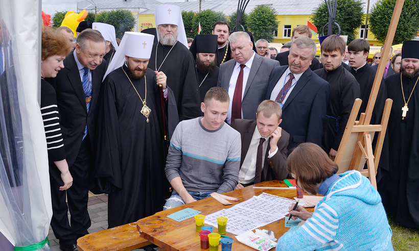 Почётные гости — Полномочный представитель Президента РФ в ЦФО Александр Беглов, Губернатор Брянской области Николай Денин, Государственный секретарь Союзного государства Григорий Рапота, председатель Гомельского облисполкома Владимир Дворник — приняли участие в Божественной Литургии, которую вместе с правящими архиереями приграничных регионов России и Белоруссии отслужил у храма Покрова Пресвятой Богородицы председатель отдела внешних церковных связей Московского Патриархата, митрополит Волоколамский Иларион.