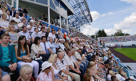 Продолжился праздник на стадионе «Динамо». Земляков поздравил Губернатор Брянской области Николай Денин.