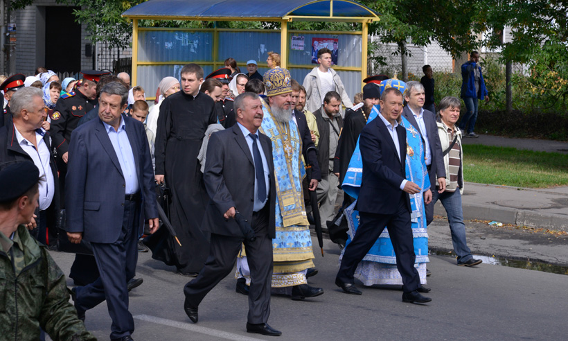 Губернатор Николай Денин принял участие в Божественной литургии, которую отслужил в восстановленном Успенском соборе Свенского монастыря Митрополит Брянский и Севский Александр, и Крестном ходе: представители духовенства, исполнительной, законодательной власти региона, муниципальных образований, горожане прошли от древней обители к Кафедральному собору.