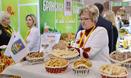 У стенда Брянской области, который является одним из самых крупных на агропромышленной выставке «Золотая осень-2014», аншлаг: продукция наших производителей вызвала огромный интерес у участников. Предприятия Брянской области предлагают высококачественную молочную, мясную, овощную продукцию, известные в России кондитерские изделия, конфеты, квас и многое другое.