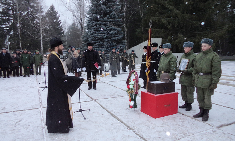 Под звуки военного оркестра и троекратный залп из автоматов урна с прахом солдата была предана земле. На могилу были возложены цветы и венки. Родственники не сдерживали волнения, молились и благодарили всех, кто помог установить историческую справедливость и провести захоронение по всем православным канонам. Отпевание провел иерей Павел Корнеев.