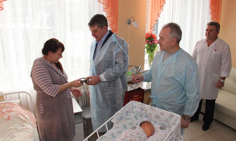 Мамам руководители области и города вручили подарки, а их сыновьям и дочерям — памятные медали «Рождённому в городе Брянске».