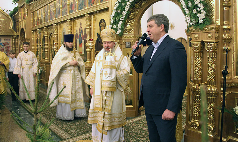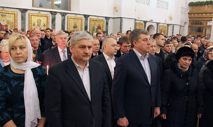 Литургию совершил митрополит Брянский и Севский Александр. По окончании службы владыка Александр поздравил всех с праздником Рождества Христова. Обратился с поздравлением к участникам торжеств и глава региона Александр Богомаз: " Сегодня, спустя десятилетия атеизма, спустя времена, когда рушились святыни, а священнослужители подвергались гонениям — мы здесь все вместе. И духовная, и светская власть, и простые миряне. И мы имеем возможность вместе помолиться за себя, за наших близких, за нашу страну, за всех братьев-славян. Сегодня, в условиях жестких санкций, давления, которое испытывает наша страна, нам, как никогда, надо быть вместе. Нам надо объединяться на основе тех скреп, которыми являются наша культура, наша великая история, великие ратные подвиги отцов, дедов и прадедов. И, конечно, одной из главных скреп является православная вера!»