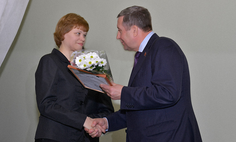 Затем состоялось награждение Почетными грамотами губернатора Брянской области и областной Думы, а также чествование победителей областного творческого конкурса журналистов на соискание грантов губернатора Брянской области.