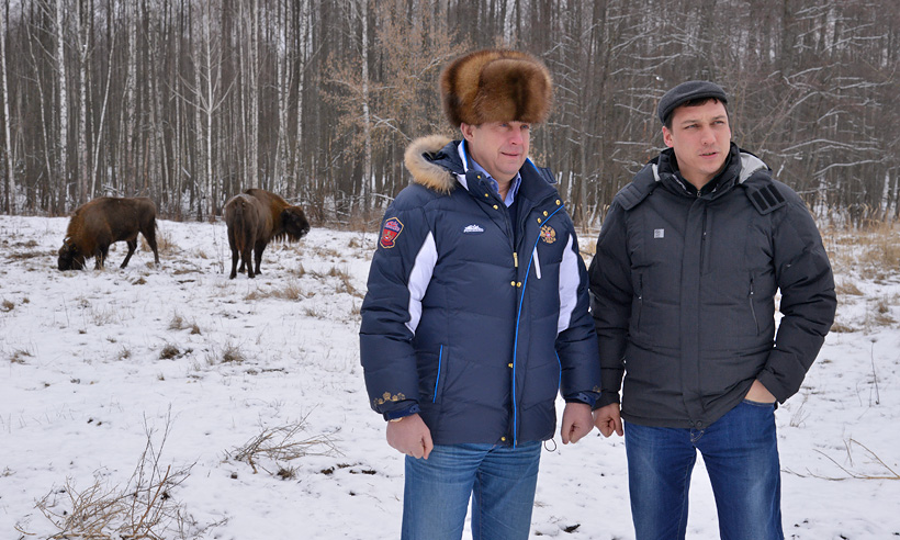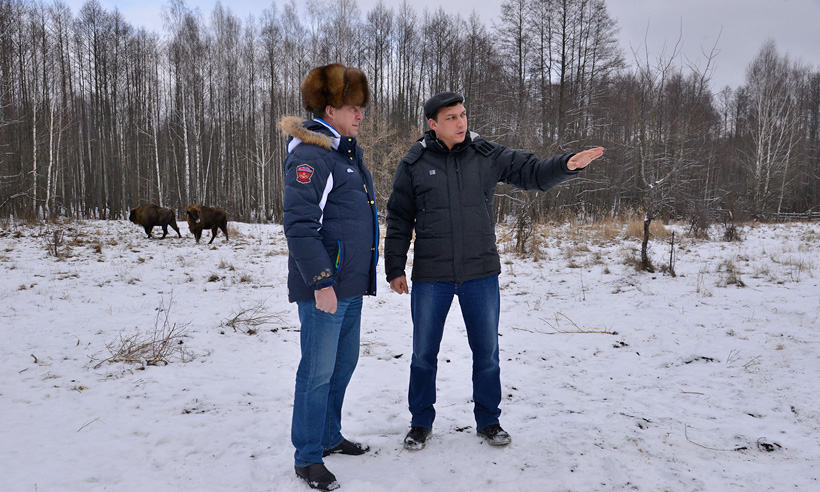 Сегодня глава Брянской области Александр Богомаз посетил заповедник «Брянский лес», где в этот день в дикую природу выпустили очередную партию зубров. Директор заповедника Александр Никитенков, его заместитель Петр Шпиленок, председатель ассоциации заповедников и национальных парков России Тихон Шпиленок, основатель и первый директор заповедника Игорь Шпиленок провели главу региона по экологической тропе, рассказали об обитателях Брянского леса. После этого отправились на кордон «Пролетарский», на территории которого живут зубры.