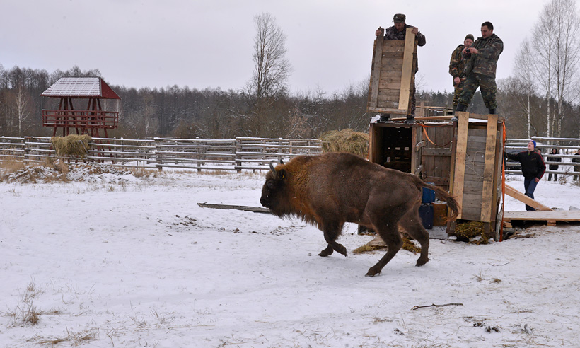 Программа сохранения европейского зубра в России утверждена в 2002 году. В ее рамках на территорию заповедника «Брянский лес» за 10 лет было завезено более 20 животных. В этот раз из питомника Приокско — Террасного заповедника доставили 6 зубров разного возраста. На глазах собравшихся их выпустили в вольер, откуда чуть позже зубры уйдут в лес. Комментируя это событие Александр Богомаз сказал: «Это поразительные животные. Мощные и грациозные одновременно. Но самое поразительное — это та преданность делу, с которой работает династия Шпиленков. Они целиком отдают себя будущему. Будущему и природы, и всей страны. Ведь без природы человек жить не может. И очень приятно, что возрождается популяция зубров. То, что мы ее восстанавливаем, говорит о том, что возрождается страна».