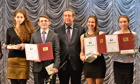 В ДДЮТ имени Ю. А. Гагарина состоялось чествование победителей конкурсов по государственной поддержке талантливой молодежи в рамках приоритетного национального проекта «Образование» 2014 года. В торжественной церемонии награждения приняли участие глава региона Александр Богомаз и председатель Брянской областной Думы Владимир Попков.