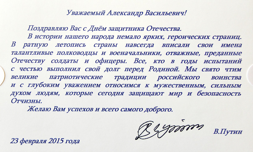 В поздравлении Президента Российской Федерации Владимира Путина отмечается: