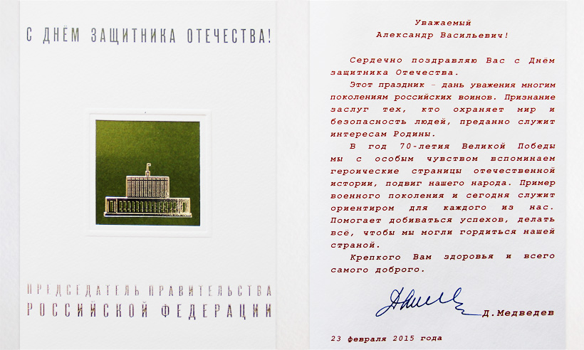 Телеграмму прислал Председатель Правительства РФ Дмитрий Медведев: