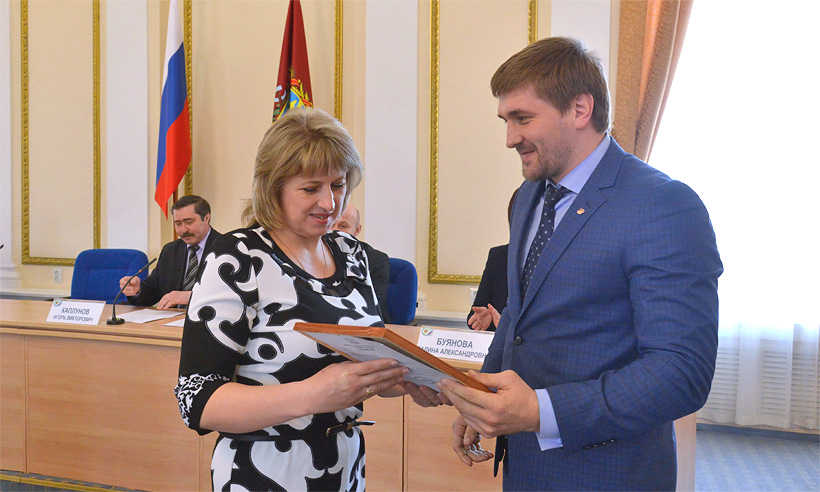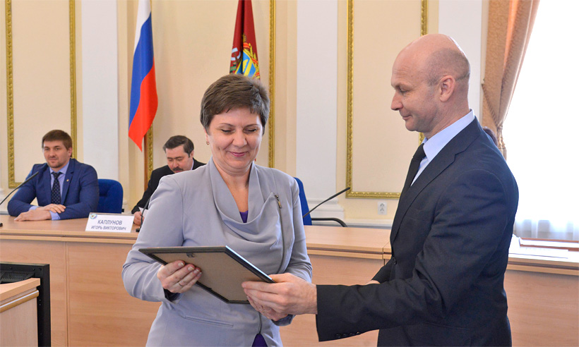 Началось заседание с церемонии награждения Почетными грамотами и благодарственными письмами губернатора Брянской области, за активное участие в подготовке и проведении выборов 2014 года были награждены председатели и члены участковых комиссий области. Вручал их заместитель губернатора Александр Коробко.