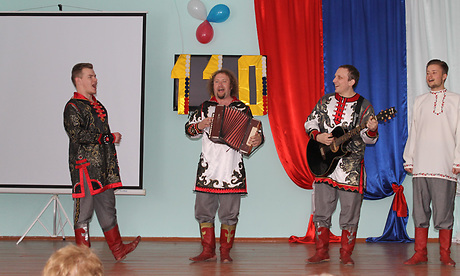 Приятным сюрпризом стал приезд ансамбля русской песни «Бабкины внуки», которые поздравили школу песней «Катюша».