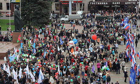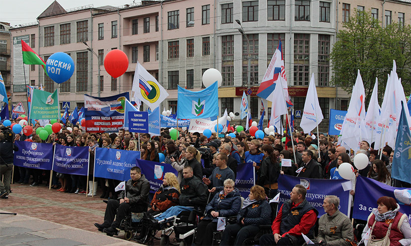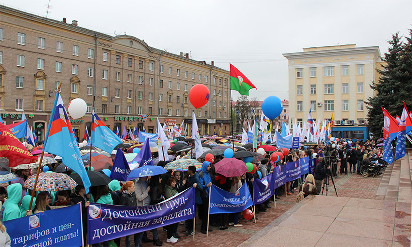 В завершение митинга его участники приняли резолюцию. Затем с площади Ленина в сторону площади Партизан стартовал профсоюзный велопробег, посвященный празднованию 1 Мая — Дня Весны и Труда и 70-летию Победы в Великой Отечественной войне.
