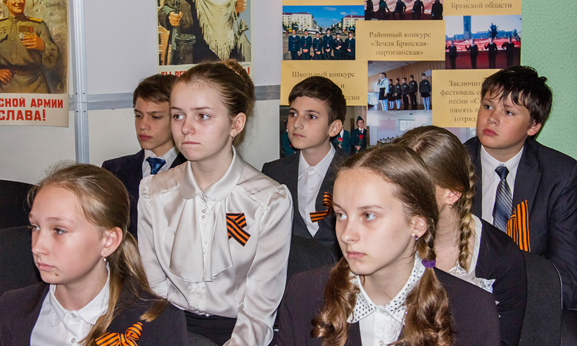 Ребятам рассказали о вехах военной истории Брянщины, о воевавших в Брянских лесах героях-партизанах, о подвигах ровесников нынешних школьников. Мальчишки и девчонки говорили о своих прадедах, принимавших участие в Великой Отечественной. Это и партизаны, участвовавшие в операции по подрыву Голубого моста, и участники Сталинградской битвы, других значимых сражений той войны. С наступающим Днем Победы ребят поздравила Ирина Кузьмина: