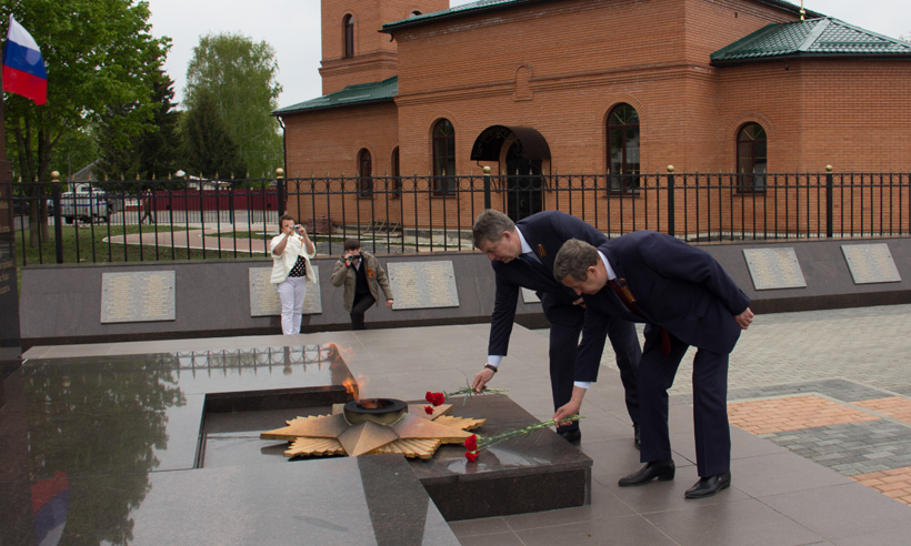 В ходе этой поездки представители власти также оценили, как подготовлен райцентр к празднованию юбилея Великой Победы, возложили цветы к мемориалу героев-красногорцев, посетили построенную всего за год часовню в честь участников локальных войн.