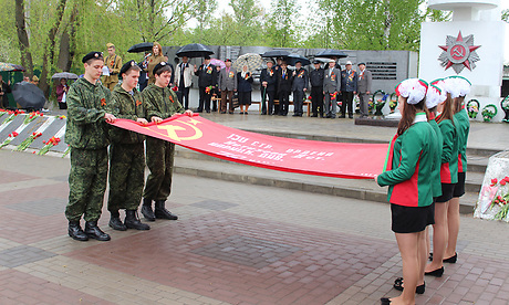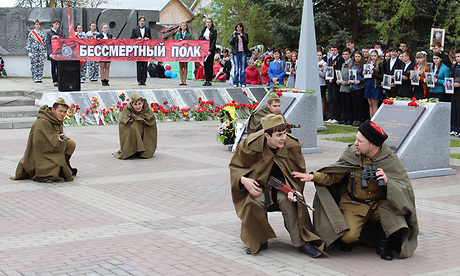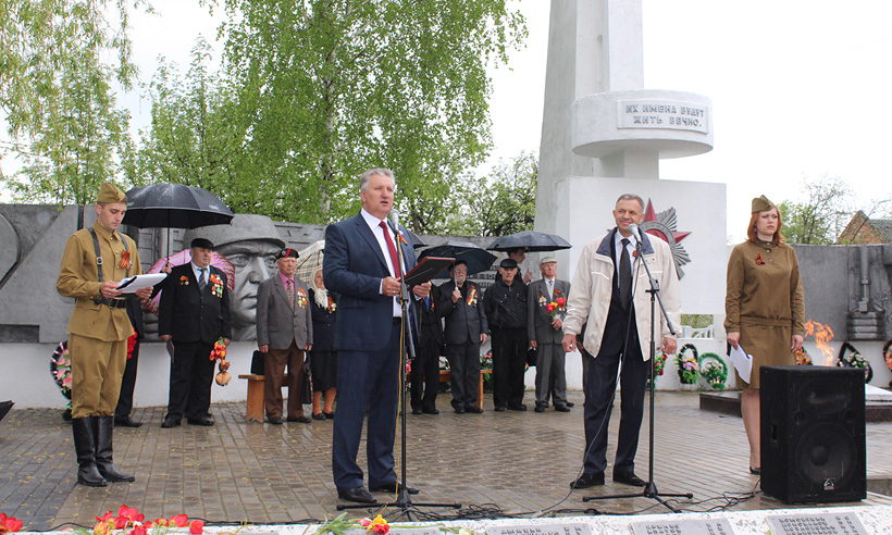 8 мая в Злынке провели торжественный митинг «Мы из бессмертия», посвященный 70-летию Победы. На месте высадки разведовательно-диверсионной группы на границе России и Беларуси (п. Красный камень) состоялась встреча делегаций Злынковского и Добрушского районов. Делегации возложили цветы к памятнику. На митинге состоялась торжественная передача копии знамени Победы делегации республики Беларусь из города Добруша. Лучшие юнармейцы нашего города передали копию знамени лидерам белорусского Союза молодежи. Сопроводительную грамоту заместителю председателя Добрушского исполнительного комитета В. Н. Емельянову передал глава администрации Злынковского района А. П. Грищенко.