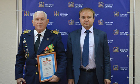 Первыми награжденными стали майские юбиляры: Курбатов Валерий Венедиктович, именно в этот день отмечающий свое 75-летие, и Новиков Владимир Ильич, чей 65-летний юбилей совпал с Днем 70-летия Великой Победы. Директор департамента вручил ветеранам Благодарственные письма Губернатора Брянской области. Валерий Курбатов в гражданской авиации прошел путь от второго пилота самолета до командира летного отряда. За успешное и безаварийное выполнение полетов был награжден Орденом трудового Красного Знамени; его имя занесено в Книгу Почёта Министерства гражданской авиации. Владимир Ильич Новиков 44 года отдал авиации, летал и на самолетах, и на вертолетах, выполнял многоцелевые полеты по оценке радиационной обстановки после катастрофы на Чернобыльской АЭС.