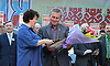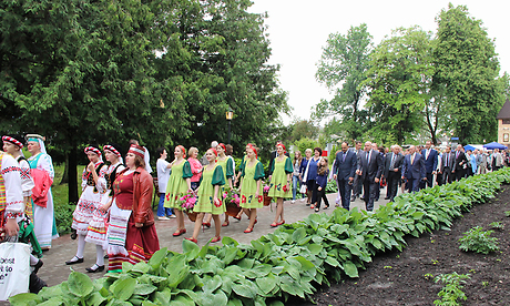 У выхода из дома культуры в преддверии большого церковного праздника Троицы почетные гости прошли через символическую березовую дугу.